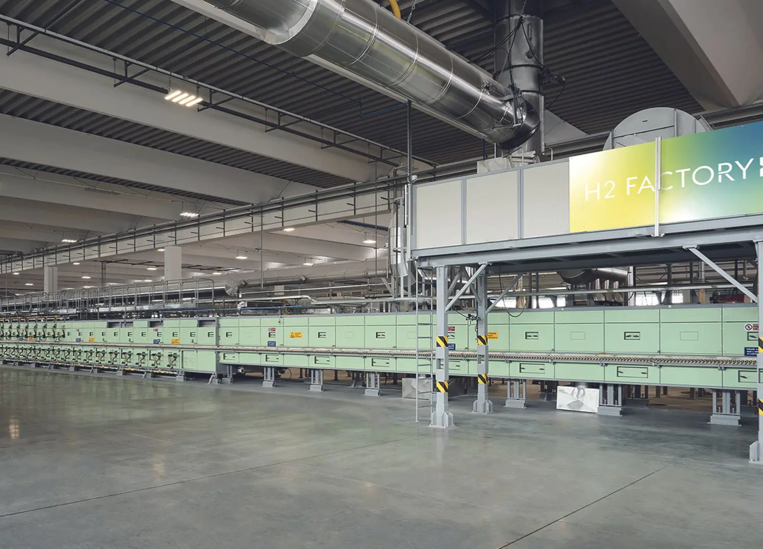 H2 Factory®, designed to operate 100% on green hydrogen, is a pioneering project that forms part of Iris Ceramica Group's journey toward decarbonization. It follows the highest design standards and has the capacity to produce and store green hydrogen using solar energy and rainwater.